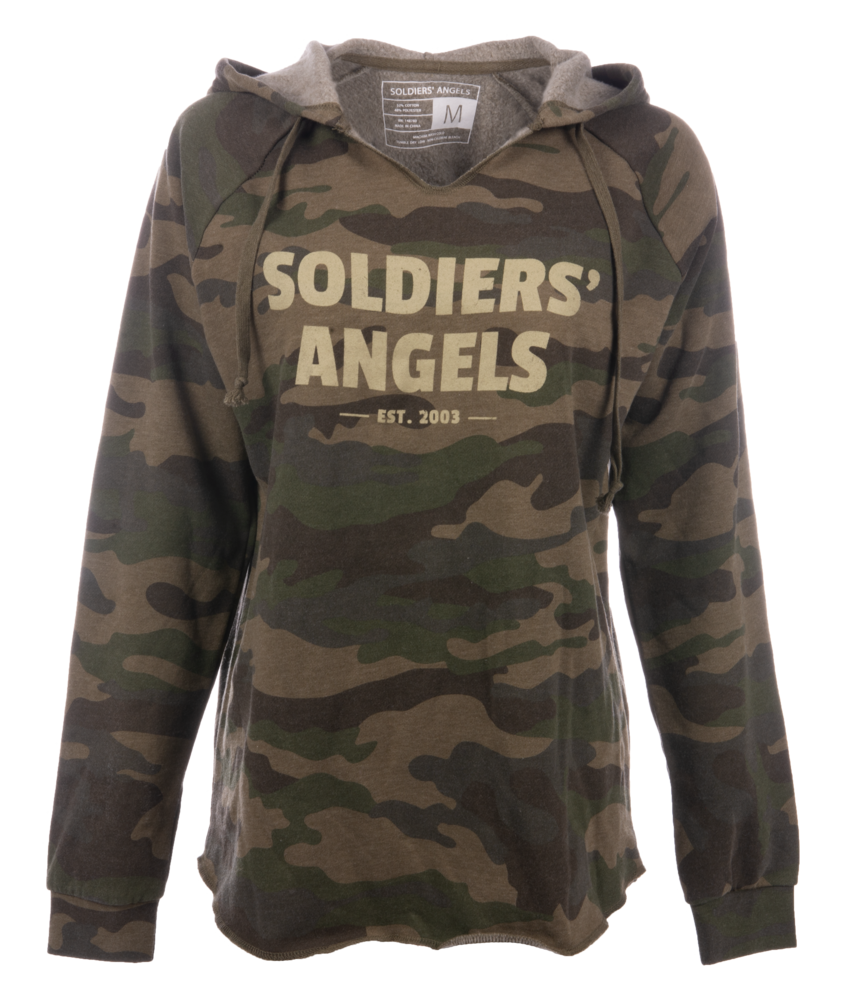 This ultra-soft Soldiers’ Angels Hooded Pullover is the perfect mix of casual comfort and everyday versatility. Made from a premium ring spun cotton/polyester blend, it features a relaxed standard fit and high-quality construction details like raglan sleeves, blind stitch + coverstitch seams, and a twill-taped neckline.