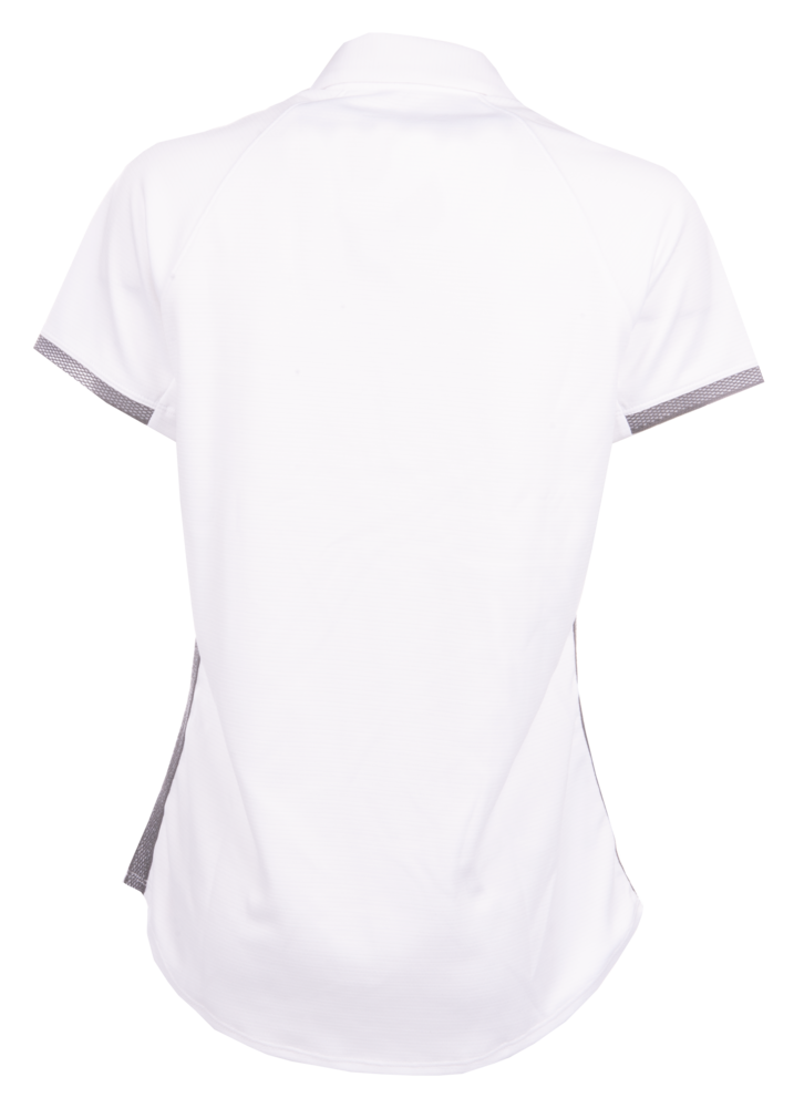 - Elongated placket and dropped scoop hem for enhanced coverage and fit