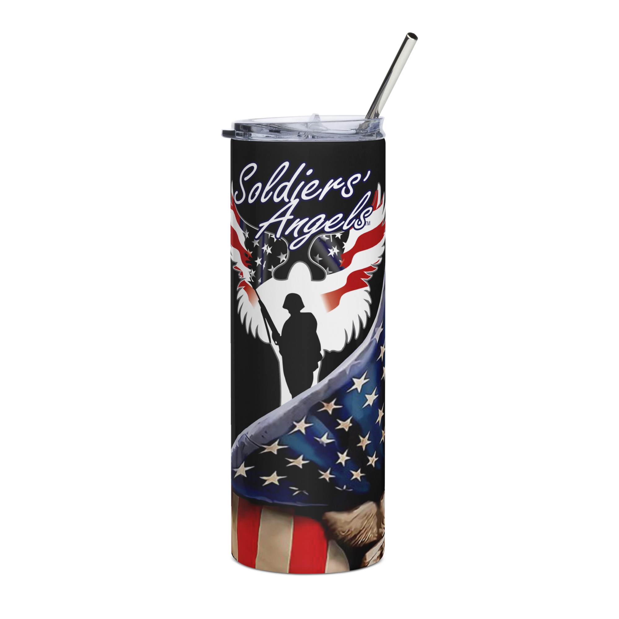 Show your pride with the Soldiers’ Angels Flag Tumbler! Featuring a bold graphic of the Soldiers’ Angels logo standing strong behind the flag, this 20 oz stainless steel tumbler is more than just drinkware—it’s a statement of support for Service Members, Veterans, and military families.