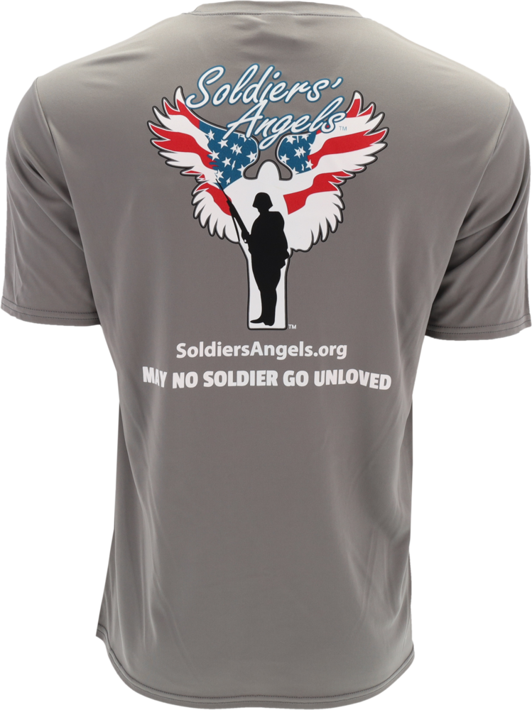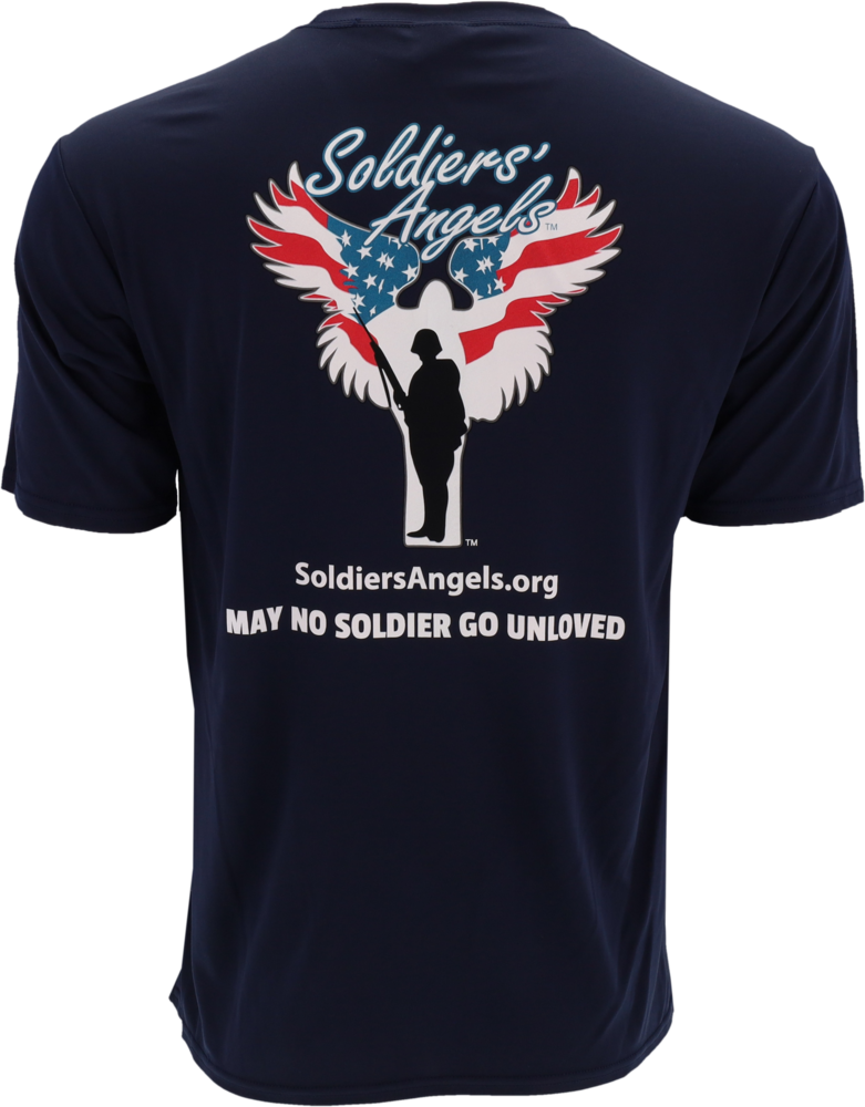 Designed with clean lines and a tag-free label, this tee offers a modern fit with set-in sleeves and durable double-needle stitching. The left chest proudly displays Soldiers’ Angels, while the back features the full-color Soldiers’ Angels logo, website URL, and our inspiring motto: “May No Soldier Go Unloved.”